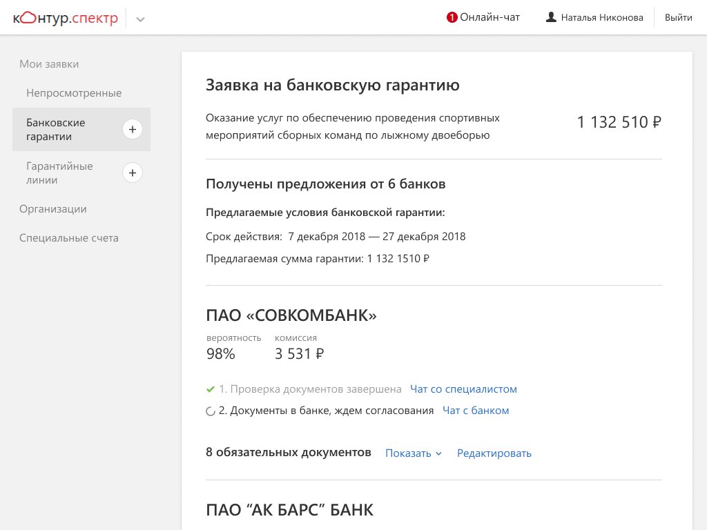 Электронный агент банковской гарантии поможет быстро получить обеспечение контракта. Сервис отправляет заявки по выбранной закупке одновременно всем банкам-партнерам. Вам остается выбрать выгодное предложение.